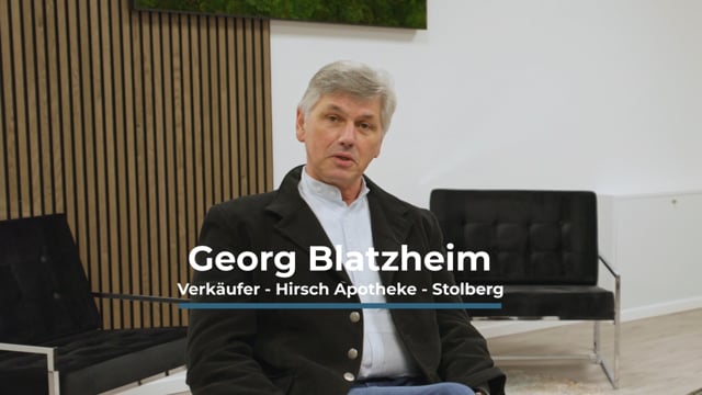 Testimonial-Video mit Georg Blatzheim, seit 20 Jahren Inhaber der Hirsch-Apotheke in Stolberg. Im Gespräch berichtet er über den erfolgreichen Verkauf seiner beiden Apotheken.
